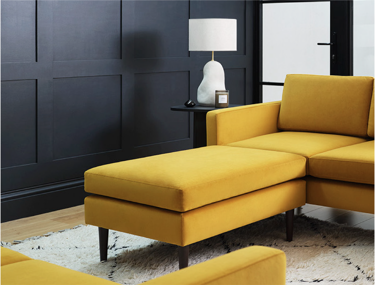 Die Chaiselongue-Kollektion umfasst zwei unterschiedliche Designs in verschiedenen Farben und Materialien wie Leinen, Samt und Leder. Alle unsere Bezüge haben einen weichen Griff und sind pflegeleicht.