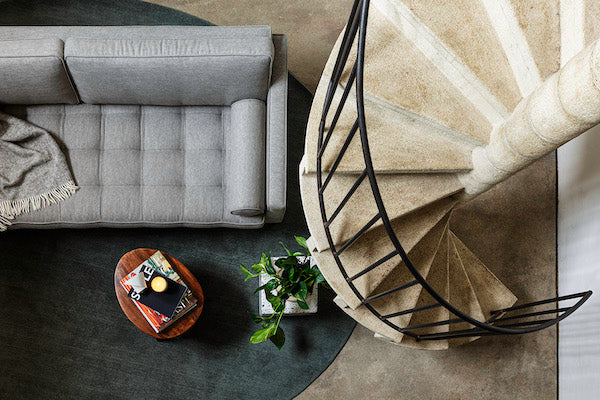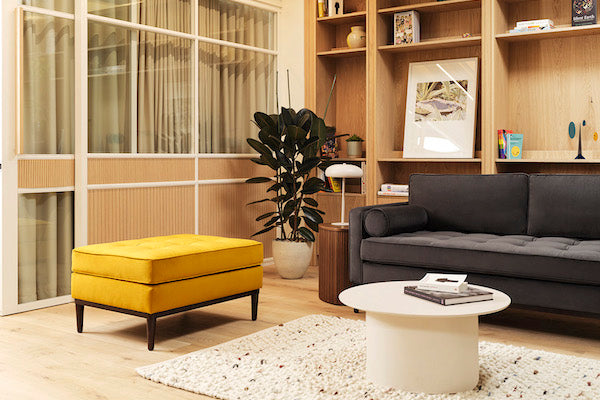 Das hängt davon ab, welcher Look dir vorschwebt. Wenn du einen modernen skandinavischen Look anstrebst, solltest du erdige Farbtöne mit deinem grauen Sofa kombinieren. Du möchtest den Raum lieber im Mid-Century-Stil gestalten? Dann sind Teakholzmöbel eine gute Wahl. Und du kannst mit anderen Grautönen, Texturen und Stoffen Kontraste erzeugen. Lies unseren Leitfaden zum Styling einer Couch in Grau, um weitere Ideen zu sammeln.