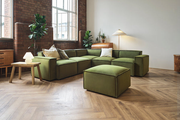 Schaffe genug Platz für alle, ohne beim Stil Kompromisse einzugehen – mit unseren modernen L- oder U-förmigen Sofas der Kollektion Model 03. Du kannst Elemente mühelos deinem Ecksofa hinzufügen, entfernen oder neu zusammenbauen – ganz ohne Werkzeug. Wir liefern dir das modulare Sofa innerhalb von 24 Stunden in handlichen Kartons. Du kannst es dann in nur 10 Minuten zusammenbauen. Perfekt für entspannte Stunden zu Hause.