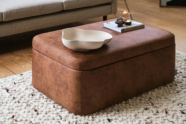 Ja. Du musst auch keine Kompromisse beim Design eingehen, weil wir sowohl runde als auch rechteckige Polsterhocker mit Stauraum bieten.