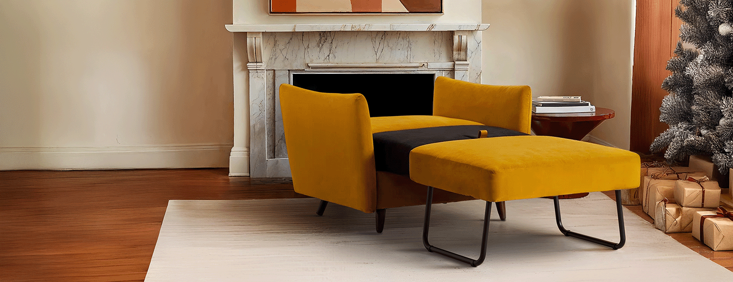 Ein Schlafsessel ist ein kleines Schlafsofa, das sich in ein Einzelbett verwandeln lässt, auf dem nur eine Person schlafen kann. Er ist ideal, wenn du nicht so viel Platz hast oder kein großes Schlafsofa möchtest oder brauchst. Ein Schlafsessel ist so groß wie ein gewöhnlicher Sessel.