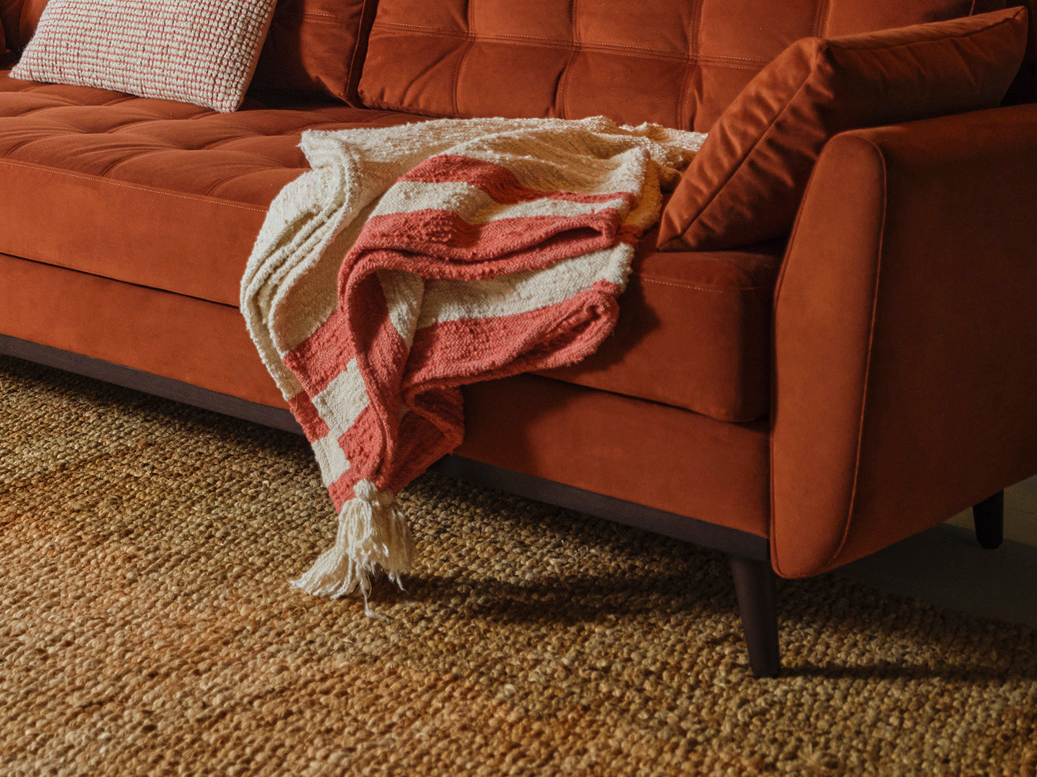 Wollüberwürfe sind beliebt für Sofas, denn sie sind gemütlich warm und geben dem Raum eine schöne Textur. Wolle ist sehr strapazierfähig und von Natur aus fleckenresistent und ist daher ein beliebtes Material für Sofas und Überwürfe. Und Wolle ist nicht nur warm und robust, sondern auch atmungsaktiv. Das Material hat wärmeregulierende Eigenschaften und eignet sich daher für kalte Monate genauso wie für warme.