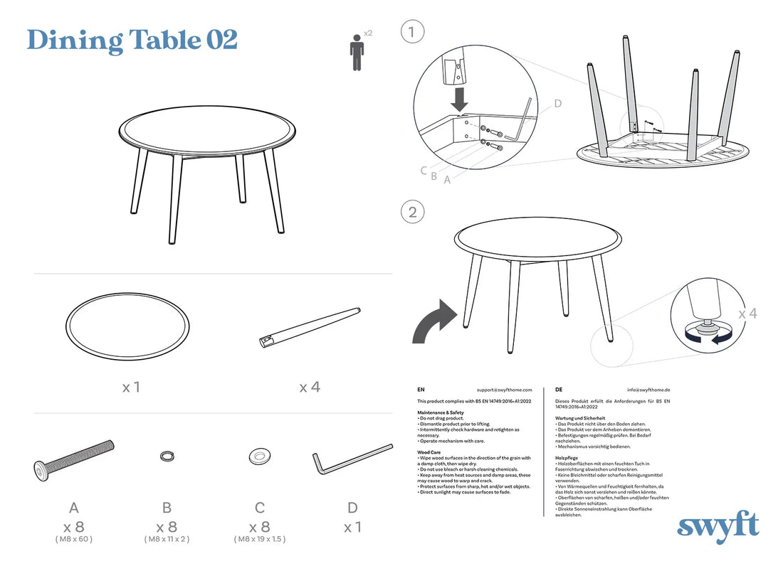 - Tooled assembly required (8 bolts, hex-key tool included)