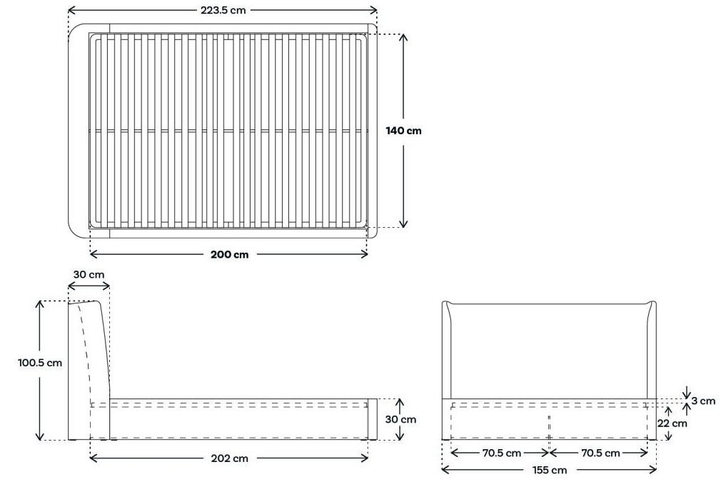 - Lieferung in 3 Boxen (Kopf- und Fußteil, Seitenteile, Lattenrost)