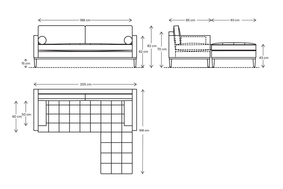Das Dreisitzer-Ecksofa Model 02 ist eine Kombination aus einem Dreisitzer-Sofa und einem Polsterhocker, der entweder auf die linke oder auf die rechte Seite gestellt werden kann. Das Sofa ist perfekt zum gemütlichen Faulenzen am Sonntag, nette Abende mit Freunden oder einen bequemen Lesemarathon. So wie alle Swyft-Möbel kann das Ecksofa Model 02 in Minutenschnelle ohne Werkzeug zusammengebaut werden. Es wird in wenigen Tagen mit 15 Jahren Garantie auf das Gestell geliefert.