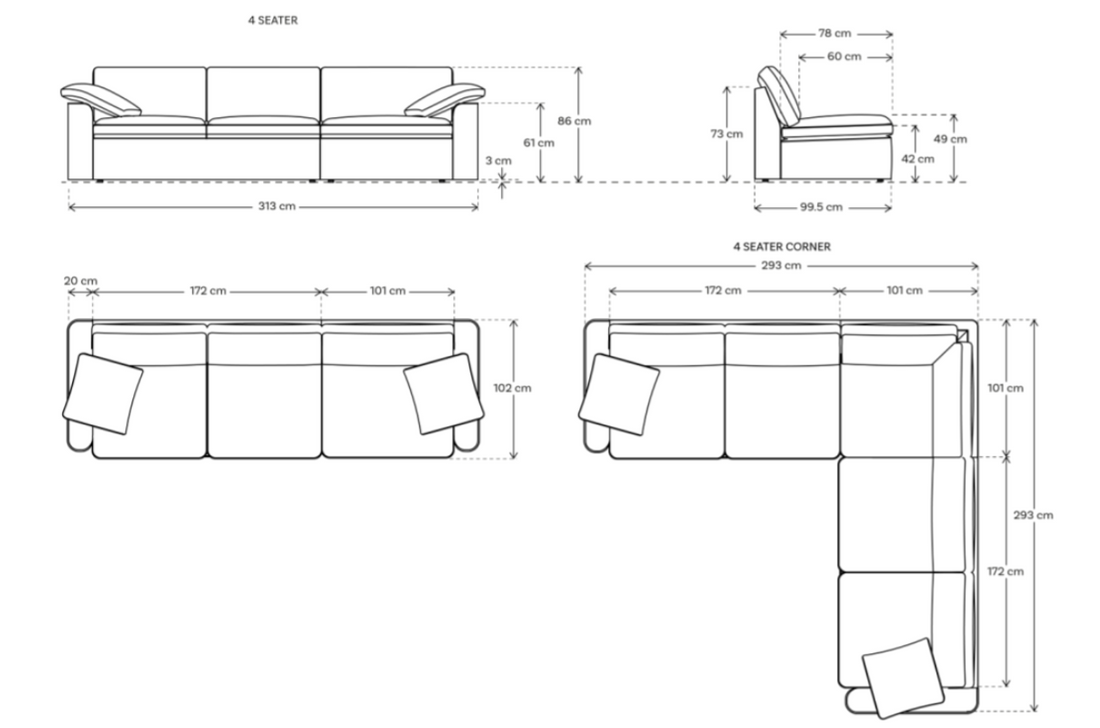 • Seat depth: 60cm