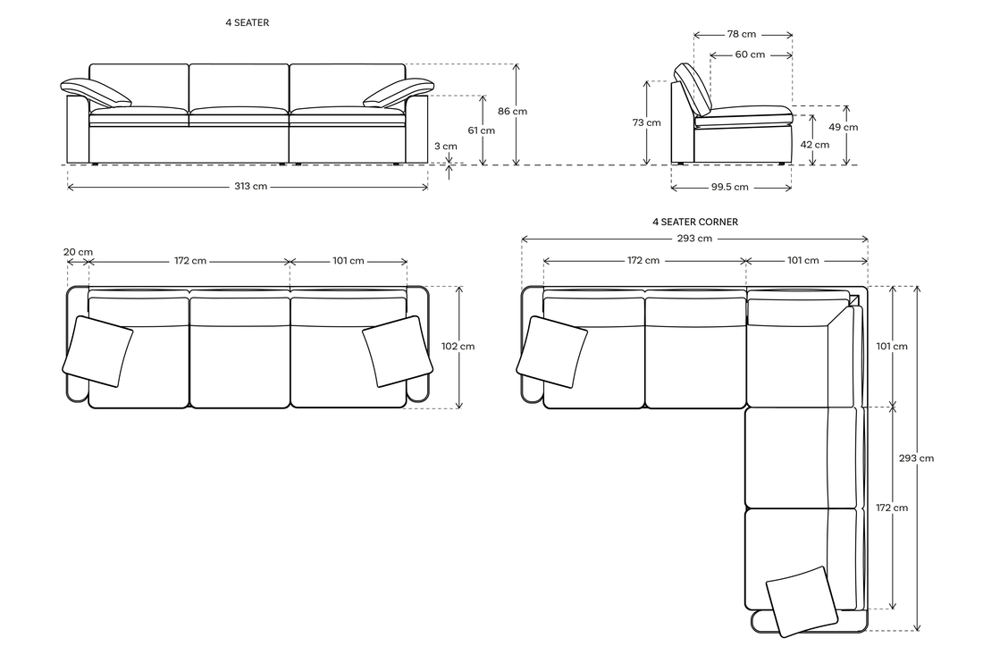 Die Kissen sind mit Federn und Hohlfasern gefüllt und bieten die weiche Bequemlichkeit, die wir alle kennen und lieben. Dank der großzügigen Proportionen bekommt jeder den "besten Platz". Und weil es sich um ein Produkt von uns handelt, dauert der Aufbau nur wenige Minuten.